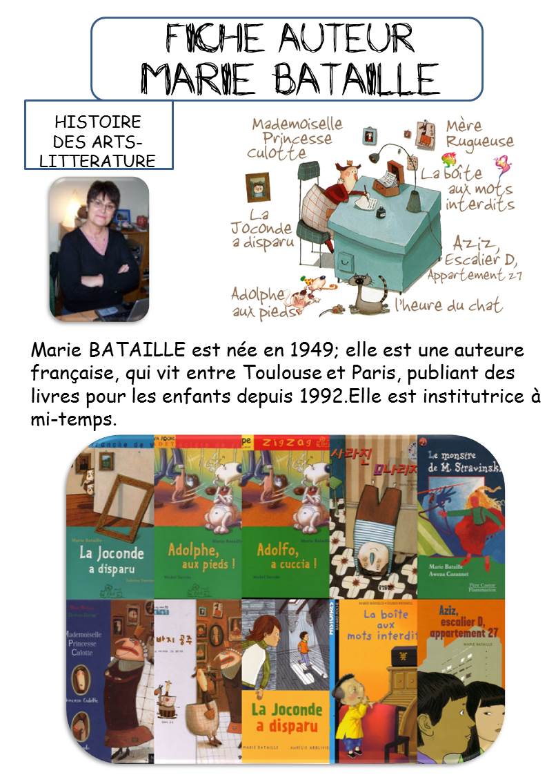 Voici pour l'histoire des arts-littérature, les fiches auteur et illustrateur: ICI ET LA